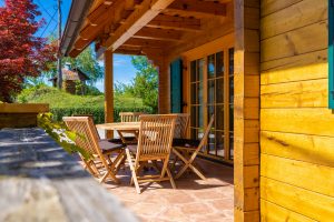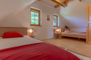 Bivanje v leseni hiši ob čudovitem rdečem javorju je lahko namenjeno parom, družinam ali skupinam do šest oseb. Moderno opremljen dnevni prostor s kaminom je v povezavi s kuhinjo in jedilnico, ki je prijeten v prav vseh haloških letnih časih. V prvem nadstropju se nahaja 2-posteljna zakonska postelja s kopalnico in WC – jem. V dodatni sobi je urejen prostor za štiri osebe. Na voljo je še dodaten ločen WC. Izjemen ambient hiše, ki stoji na vrhu hriba ima veliko teraso ob vhodu v objekt, kjer se lahko uživa ob haloški kulinariki in spremljavi vrhunskih haloških vin.